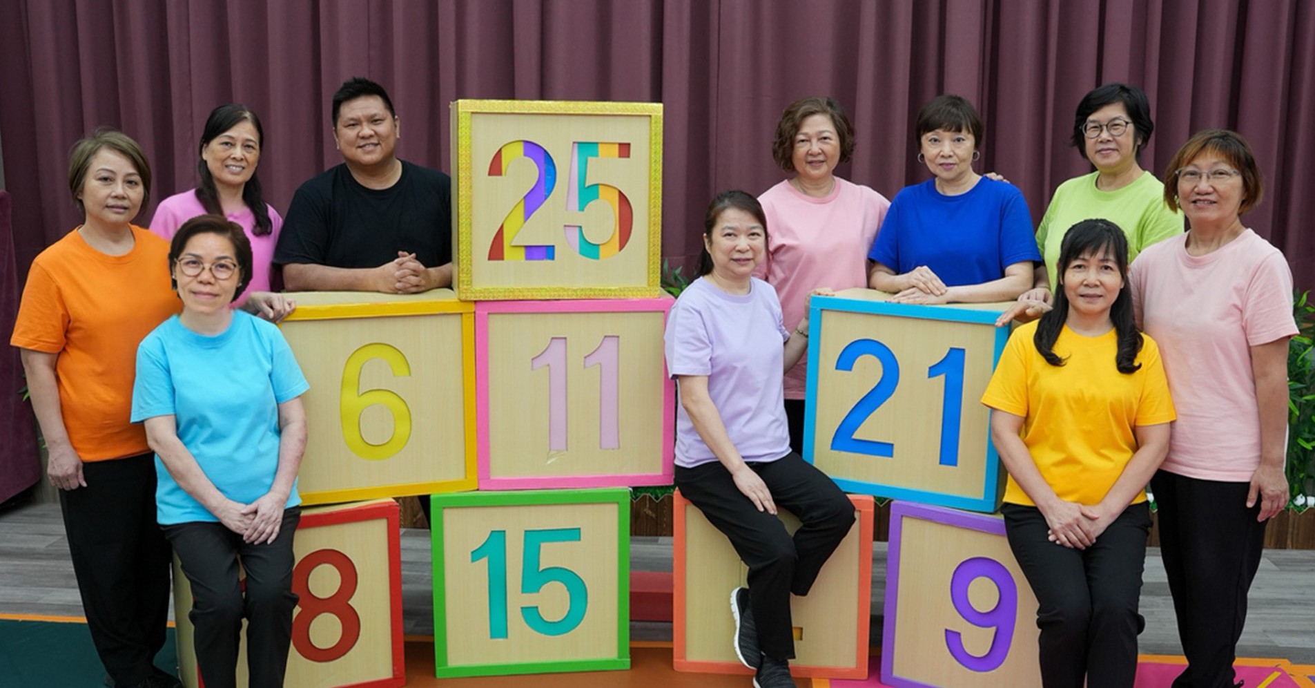後排: 陳月蓮(蓮姨)、嚴真(真姨)、羅華輝(輝哥哥)、陳少玲(玲姨)、莊素娟(娟姨)、郭寶蓮(寶姨)、陳素冰(冰姨)